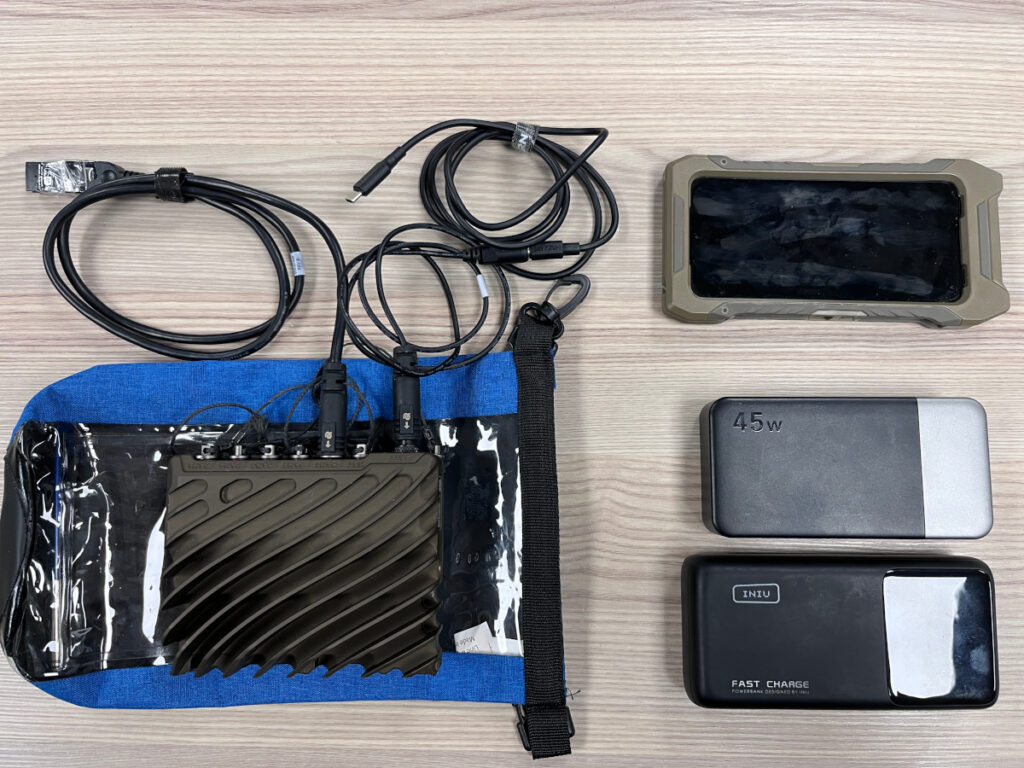Our goal was to use flight-safe USB power banks which can easily provide the 7-8W of power needed to run the capability. We ran soak tests in the office to establish a battery life of 6 hours for the smaller 45wH battery. We expected this to be reduced on the mountain so purchased a larger 92wH battery but it failed after 4 hours despite being kept warm inside an insulated jacket.