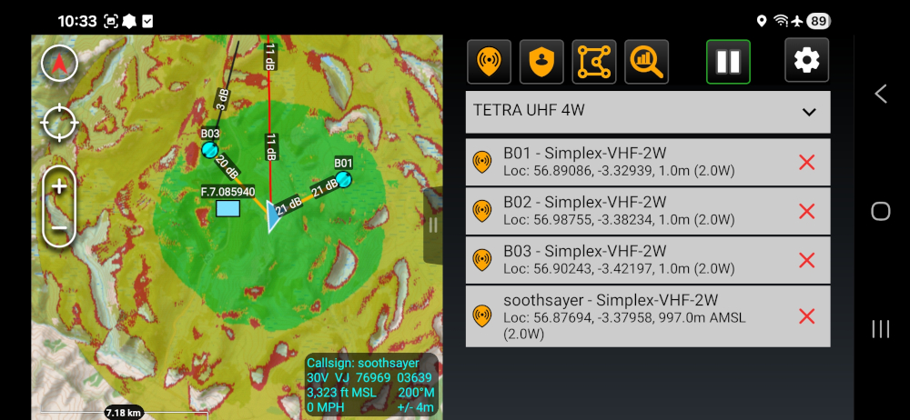 On the phone we ran ATAK 5.6.0.12 (Play store) with our SOOTHSAYER ATAK plugin version 2.7a.